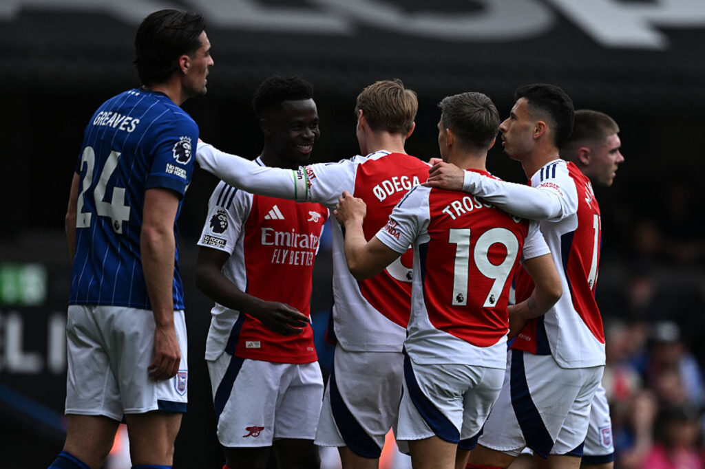 Diante do virtualmente rebaixado Ipswich Town, o Arsenal não teve dificuldades e goleou fora de casa, se mantendo vivo matematicamente na briga pelo título inglês: 4 a 0. Trossard, duas vezes, e Martinelli marcaram os gols do jogo.