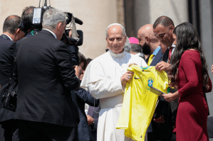 Capitão do pentacampeonato com a seleção brasileira na Copa do Mundo de 2002, Cafu se encontrou com o papa Leão…