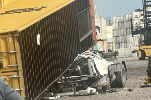 Um caminhoneiro de 48 anos morreu ao ser atingido por um contêiner de carga que caiu sobre a cabine do…