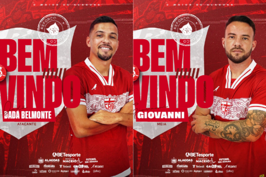 O {TEAM_LINK|3213|CRB} garantiu uma dupla de reforços para a sequência da temporada e confirmou as chegadas do meia {PLAYER_LINK|215525|Giovanni} e do atacante {PLAYER_LINK|497589|Dadá Belmonte}.