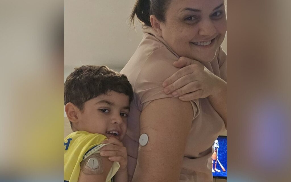 Equipamentos aprovados pela Anvisa custam até cerca de R$ 330, duram 14 dias e ajudam no controle da glicemia sem picadas diárias nos dedos. Especialistas explicam vantagens da tecnologia. Léo e a babá, Luciene Melo, em foto compartilhada nas redes sociais